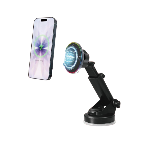 內置多塊高規格釹磁鐵 例如 N52 等級,磁力強,能準確對位並牢固吸附 iPhone 或配備相容磁圈的機殼/金屬環,支援直立或橫向放置單手操作