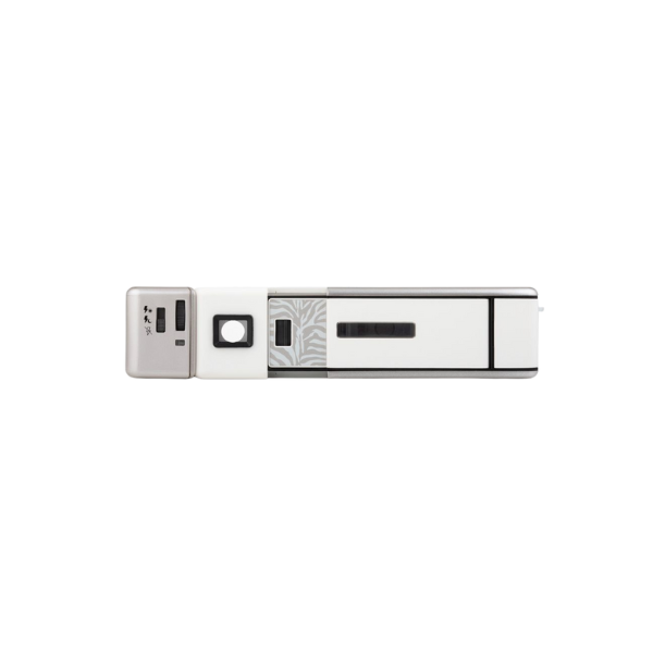- 採用時尚的白色機身,搭配斑馬紋的細節